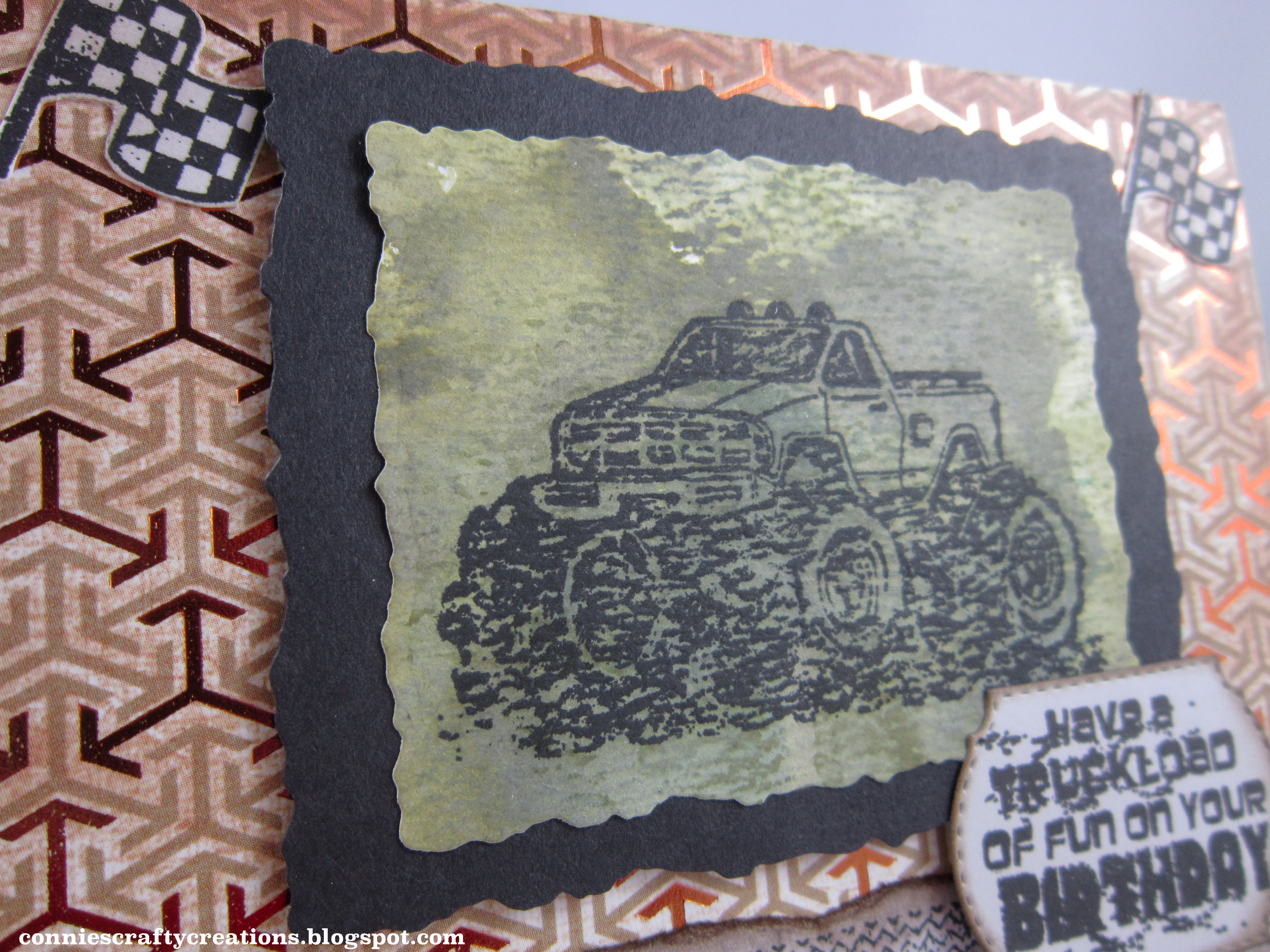 Perfect for a young man of 16! Love the theme and those images are great, truck, tire marks and racing flags! This is an awesome masculine creation! That stamp set has it all!